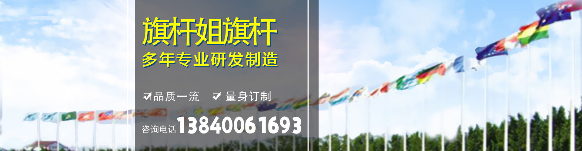沈陽市于洪區旗桿姐金屬制品經銷處專業生產批發,電動旗桿,鼓風旗桿,不銹鋼錐形旗桿,變徑旗桿,白鋼旗桿等。我們秉承"創新理念、追求卓越、迅速改善、永續經營"的經營理念;并以"質量高端","顧客的滿意是我們的榮譽"作為我們永遠不變的質量政策;以愛護環境、回報社會、關愛雇員等社會責任為己任;把"誠信、負責、創新"作為我們不斷的追求和目標,愿與廣大朋友攜手共創美好的明天!感謝您關注我們的產品,若您希望獲得進一步的了解,歡迎您隨時聯絡我們,誠邀為您提供滿意的服務!